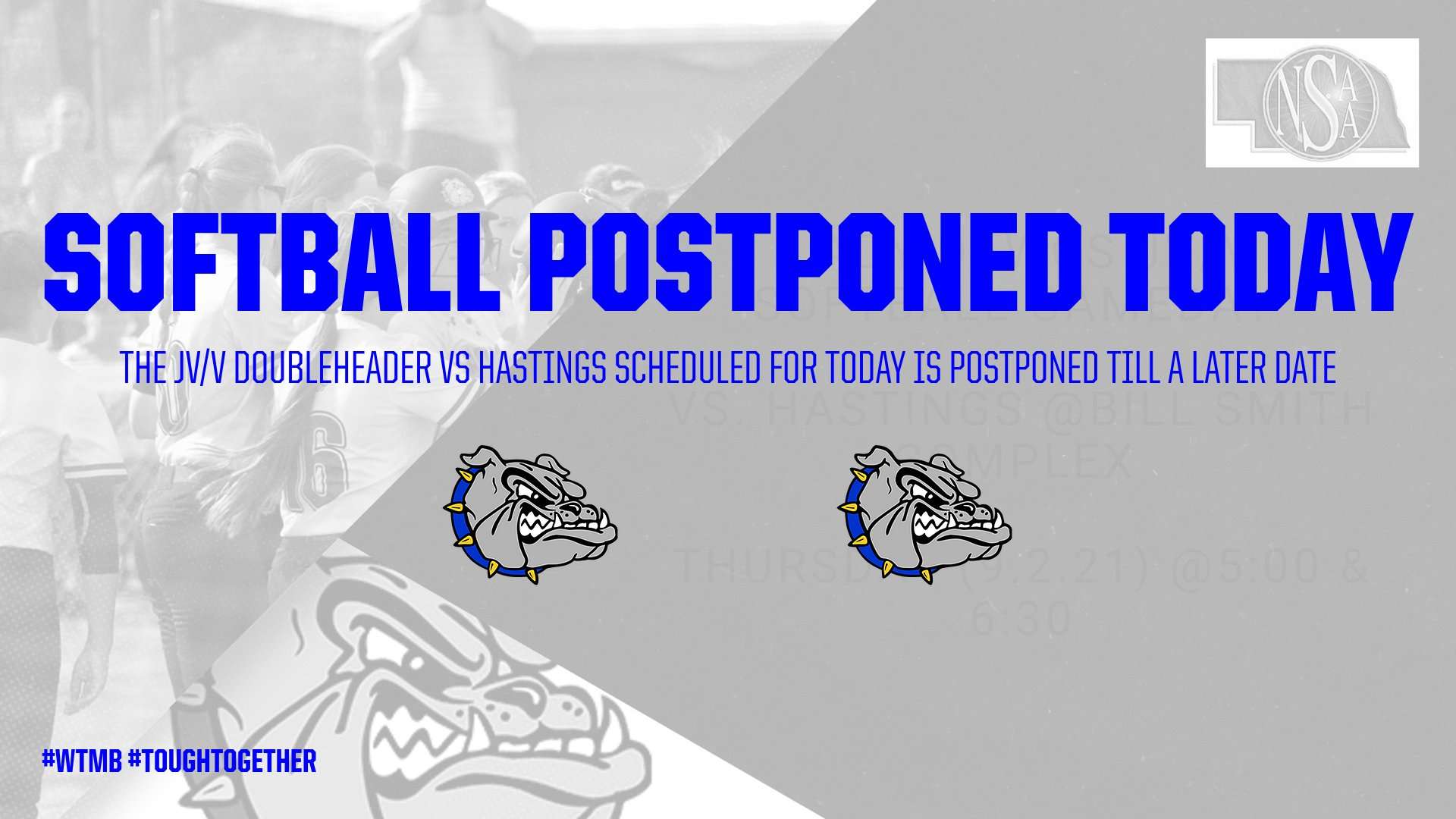 GAME CHANGE!!! The JV/V Softball doubleheader vs Hastings scheduled for TODAY has been postponed to Thursday, September 30th due to heavy rains in Hastings. Thank you for your patience and understanding in these matters. #WTMB