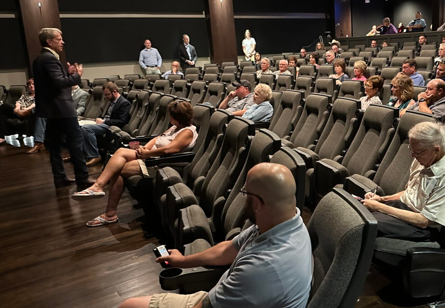 Many in the group of more than 80 people at the Sun Theatre for one of Pillen’s town halls cheered Wednesday when he repeated the stance he campaigned on: He wants to ban abortion at conception. Abortion-rights advocates have pledged to fight such a goal.